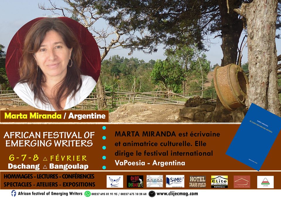 Le Festival Africain des Écrivains Émergents (FESTAE) en anglais AFRICAN FESTIVAL OF EMERGING WRITER nous invite encore une fois à la rencontre de nos cultures et histoires comme presque toutes les célébrations se veulent toujours très marquantes c’est dans cette optique qu’il on invité spécialement une poète de renom venue d’argentine:Marta Miranda je vous laisse découvrir son histoire.