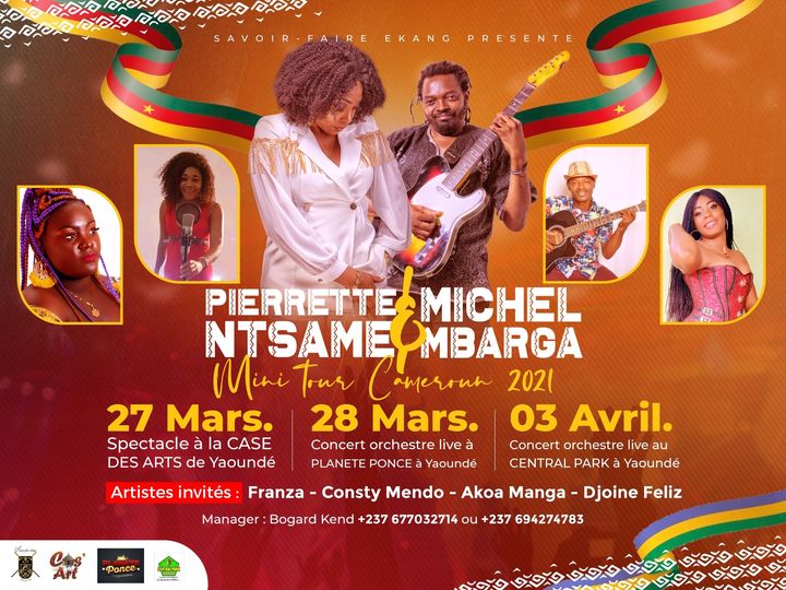 Ne manquez pas le Mini tour des artistes musiciens Pierrette Ntsamé (Gabon) et Michel Mbarga (Cameroun) qui aura lieu à Yaoundé les 27 et 28 mars et le 03 avril 2021.