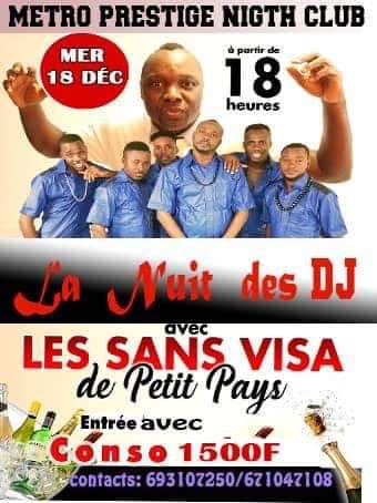 Le Metro Prestige Night Club, présente PETIT PAYS et les Sans Visa en spectacle le 18 Décembre 2019 à la nuit des Dj dès partir de 18 heures.