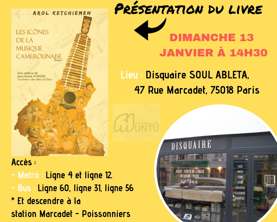 Présentation du livre :  » Les icônes de la Musique Camerounaise  » chez le disquaire SOUL ABLETA