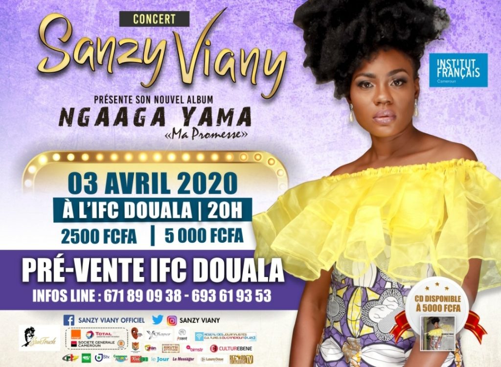 Retrouvez Sanzy Viany en concert le Vendredi 03 Avril 2020 à L’Institut Français du Cameroun de Douala à partir de 20h à l’occasion de la présentation officielle de son nouvel album intitulé “Ngaaga Yama” ( Ma Promesse) .