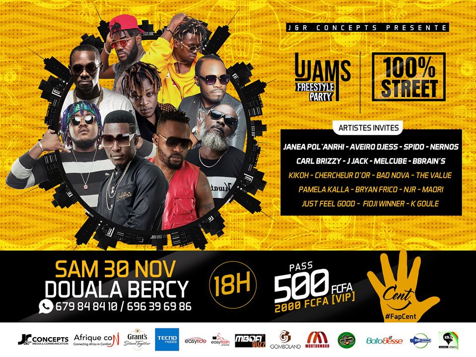 J&R Concept présente UJAMS FREESTYLE PARTY le Samedi 30 Novembre 2019 à Douala Bercy avec comme artistes invités JANEA POL’ANRHY, AVEIRO DJESS, SPIDO, NERNOS, CARL BRIZZY, J JACK, MELCURE, BBRAIN’S, KOKOH, CHERCHER D’OR, BAD NOVA, THE VALUE, PAMELLA KALLA, BRYAN FRICO, NJR, MADRI, JUST FEEL GOOD, FIDJIL et K GOULE.