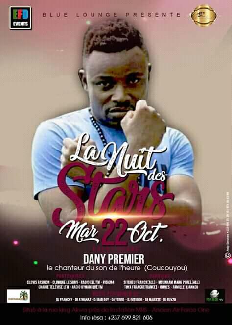 rue King Akwa DoualaLe Blue Lounge présente le Mardi 22 Octobre 2019, le chanteur de l'heure DANY PREMIER en Show case au snack bar situé à la rue King Akwa de Douala. un spectacle plein d'émotion et de fun à ne manquer sous aucun prétexte Info Résa (+237) 699 821 606