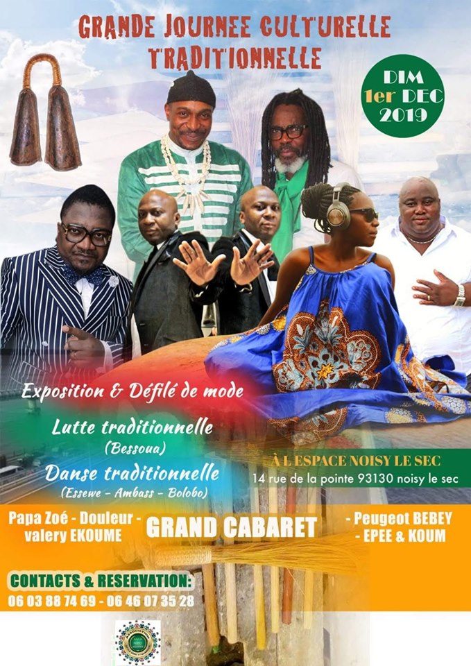 PAPY ANZA , DOULEUR , EPEE & KOUM Douala, Autre salle Kamer Showbook GRANDE JOURNÉE CULTURELLE TRADITIONNELLE LE 1er DÉCEMBRE 2019 La chefferie Traditionnelle de Deido organise le 1er Décembre 2019 la grande journée culturelle et Traditionnelle à l'Espace Noisy Le sec (14 rue de la pointe 93130 noisy le Sec) avec les artistes ¨PAPA […]