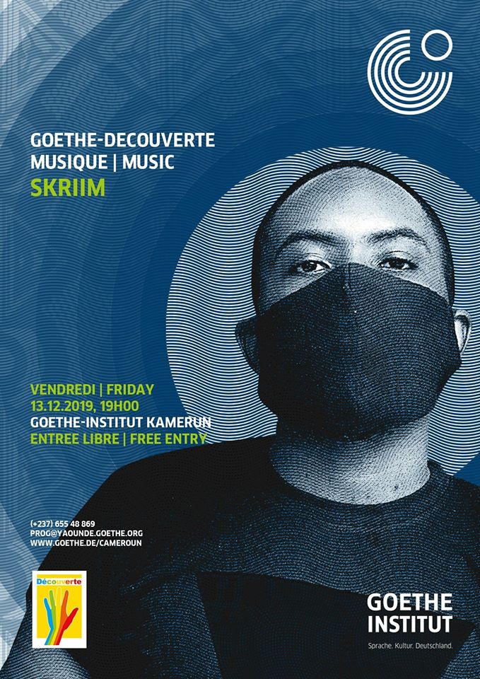 GOETHE DÉCOUVERTE MUSIC SKRIIM LE 13 DÉCEMBRE 2019 Yaounde. 13 décembre GOETHE DÉCOUVERTE MUSIC SKRIIM LE 13 DÉCEMBRE 2019 GOETHE - DECOUVERTE MUSIC présente SKRIIM en spectacle le vendredi 13 Décembre 2019 dès 19 heures, à Goethe Institut pour la présentation de son nouvel Album. Entrée Libre